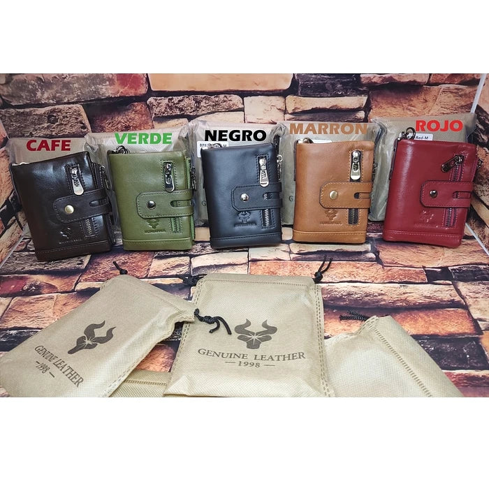 Material de alta calidad 🐄🧵: Confeccionada en cuero vacuno premium, suave al tacto y altamente resistente, garantizando que tu billetera se mantenga en perfectas condiciones a lo largo del tiempo.